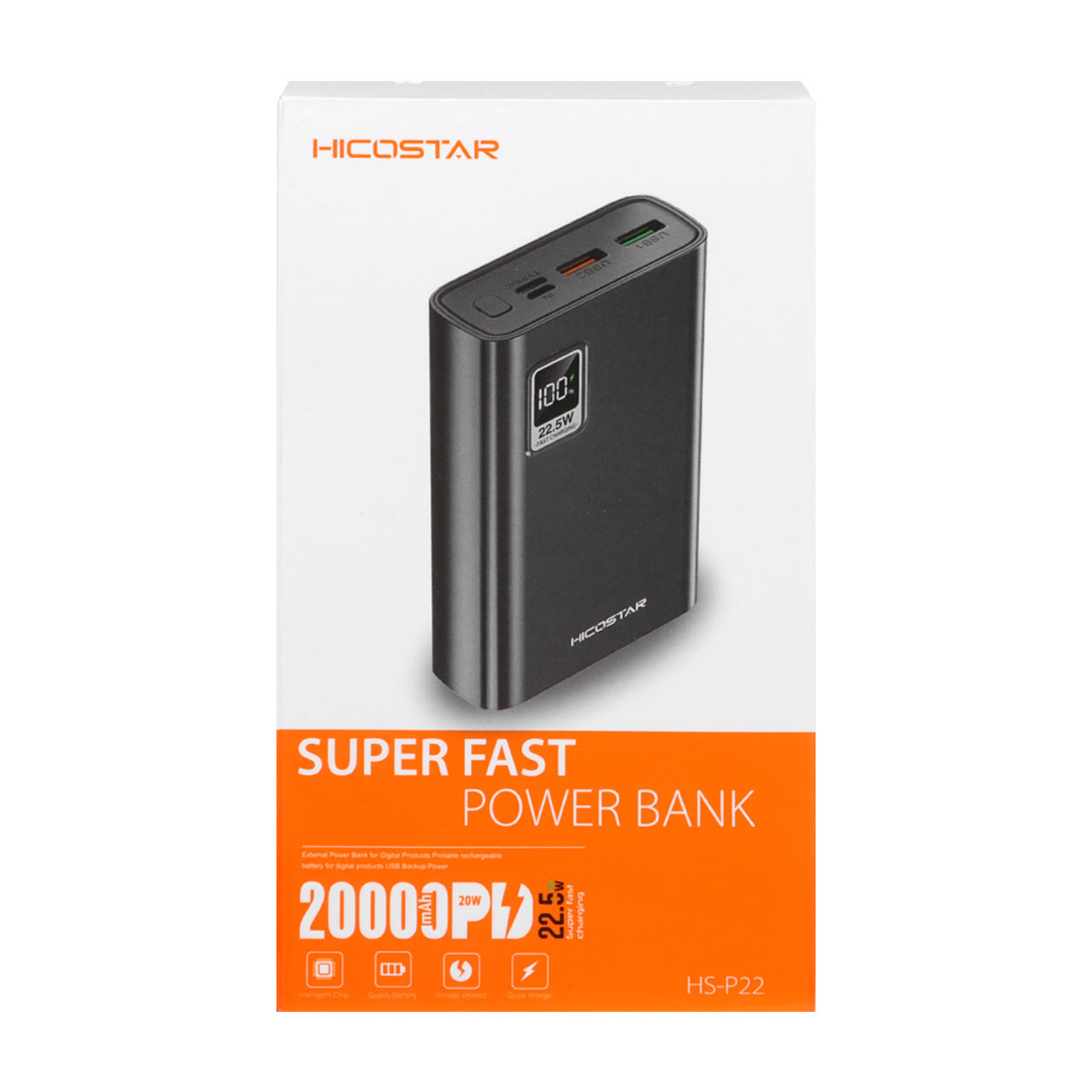 پاوربانک (فست شارژ و PD) Hicostar 22.5W 20000mAh مدل HS-P22 – مشکی